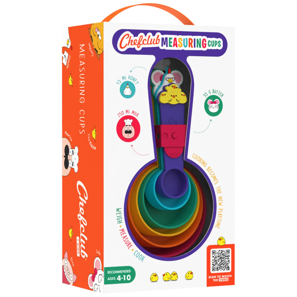 World Recipes with Chefclub Cups is a box that takes children on a journey with more than 20 emblematic recipes from the 4 corners of the world. No more complicated measurements but also difficult texts: little chefs can cook independently by following the illustrated steps of the recipe with the Chefclub Cups provided in the box. To further support the child in making the recipes, the book is interactive: all the recipes are available on video via easy-to-scan QR codes. From 4 years old! Waterproof and washable pages