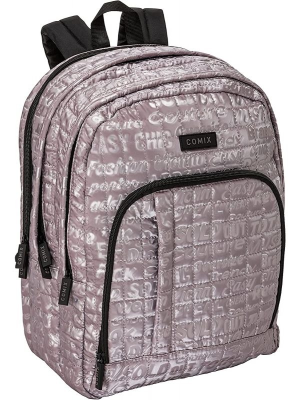 Padded and reinforced backrest, padded and adjustable shoulder straps.