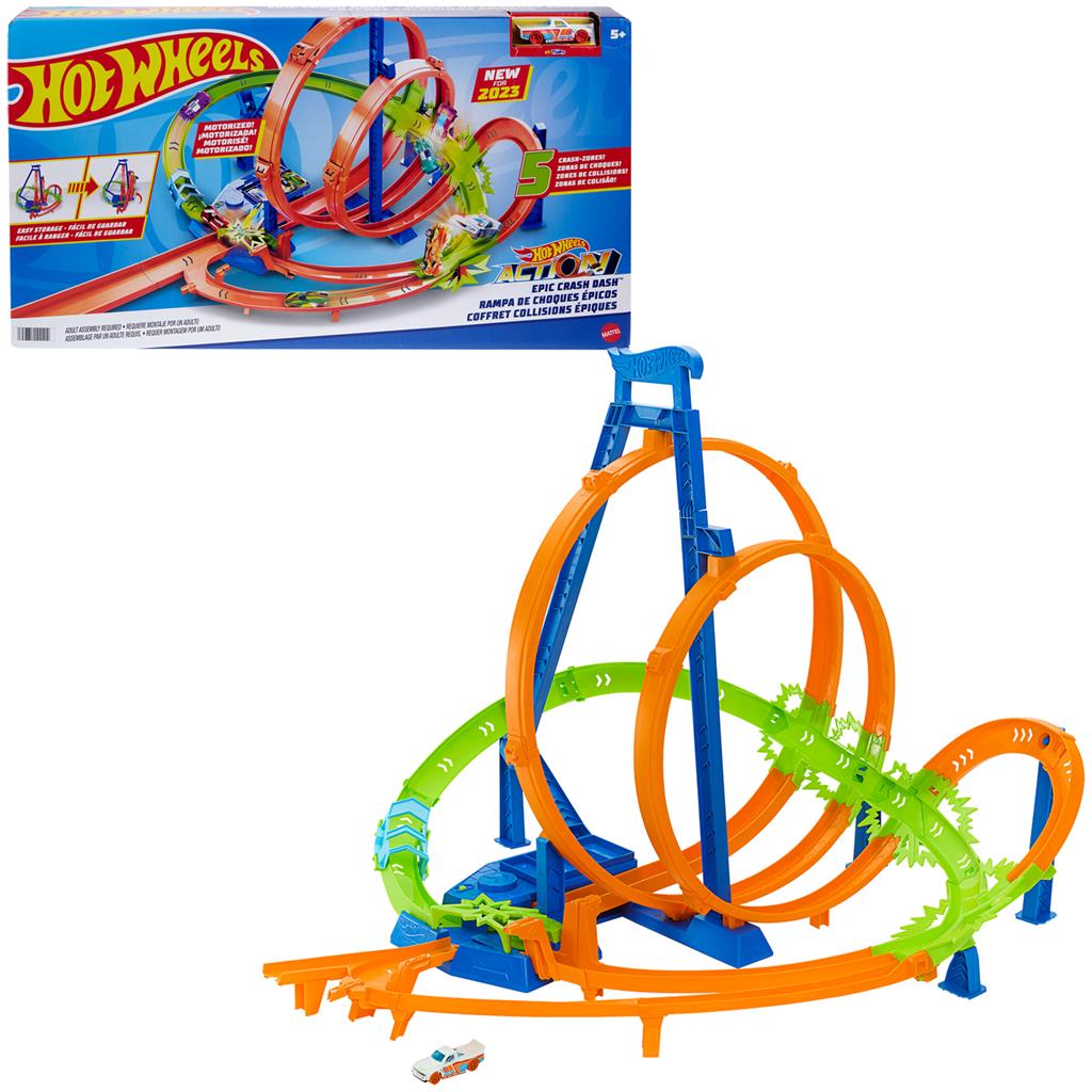 Race through 5 awesome crash zones in the Hot Wheels Action Epic Crash Dash track set.