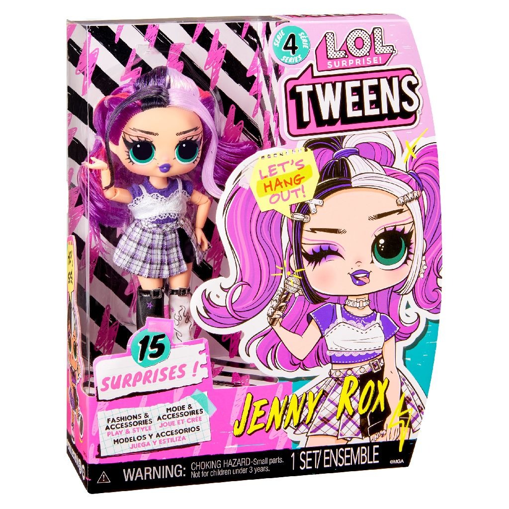 Each box includes a L.O.L. Surprise Tweens fashion doll, fierce fashions, shoes, accessories, hair clips, earrings, a purse, a microphone, a hairbrush, and a doll stand. Collect all L.O.L. Surprise Tweens Series 4 fashion dolls: Jenny Rox, Ali Dance, Olivia Flutter, and Darcy Blush