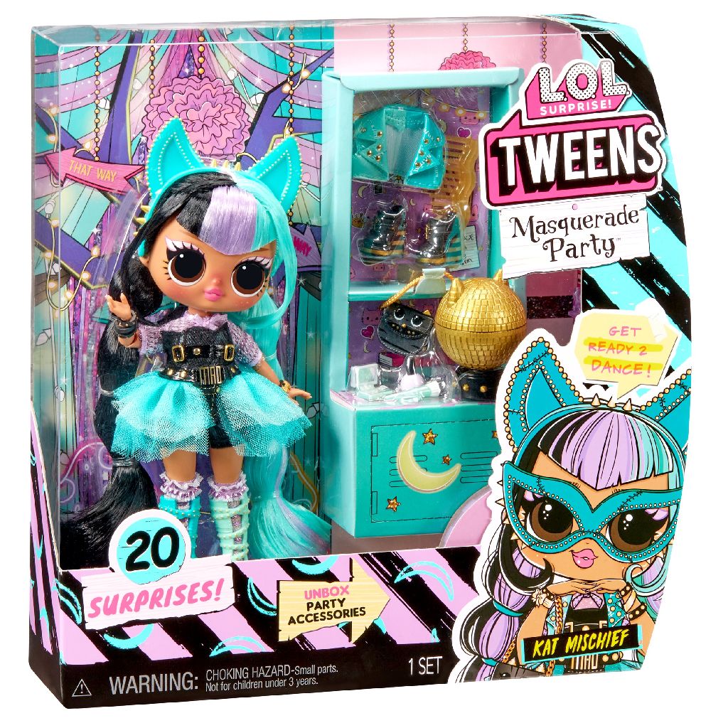 Welcome 2 wonderland! You're invited to the party of the year with the L.O.L. Surprise! Tweens Masquerade Party fashion doll, Kat Mischief. The perfect jokester, Kat’s social media skills rock, prepping to one day be a comedy star.