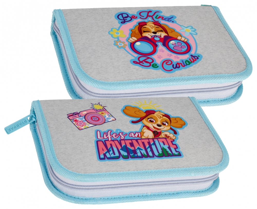 Fully equipped pencil case with 2 wings and flexible holders for school supplies, fastened with a strong zipper.The set includes pencils, felt-tip pens, a ruler, an eraser, a sharpener, a pen, a pencil, a lesson plan and a multiplication table in total over 20 elements.All the necessary set in one, thanks to which we will save time and properly equip the child.The pencil case is resistant to damage.It can be easily folded flat. Access to the utensils is then very easy.When folded, it is small and easily fits in any backpack or sack.The product is a textile product.Designed for children aged 3+.Product dimensions: 21 x 14 x 4 cmPaw Patrol license! with dog Skye!