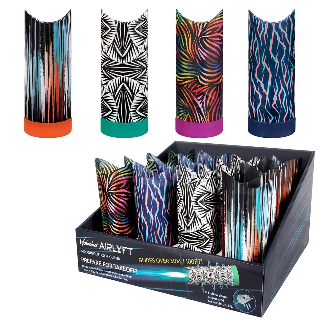 AIRLYFT is a new outdoor glider toy that flies over 30 meters 100 feet! Its revolutionary hollow shape is engineered for maximum lift as air passes through the tunnel. It’s easy for anyone to throw it high or far with many ways to throw. Throw overhand or underhand. Launch it by its tail, or throw it by the ring!. Glides over 30 m 100 ft. Made of nylon fabric and TPE ring. Size: 8.2 in 210 mm length. Case QTY: 16 pieces. Indooroutdoor use. Ages: 6+